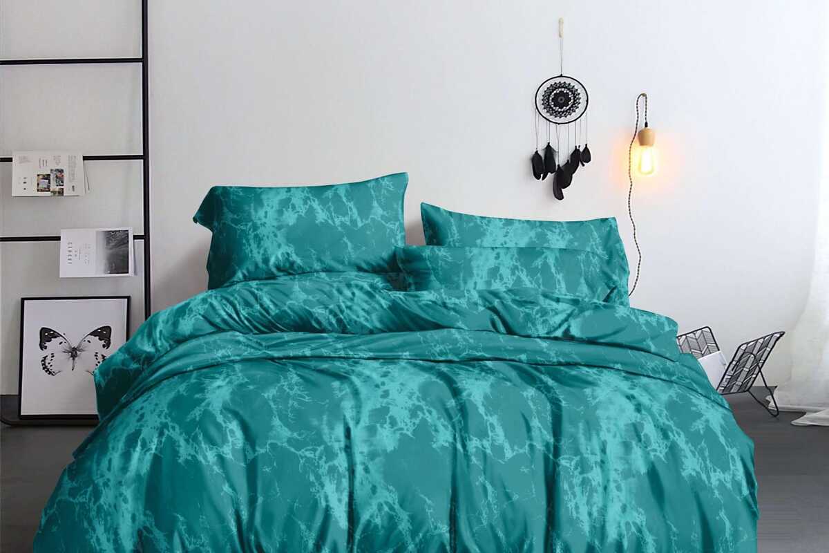 Комплект постельного белья с изумрудно-зеленым узором напоминающий морскую волну с пеной - современный дизайн, создающий уютную свежесть и комфорт в вашей спальне.