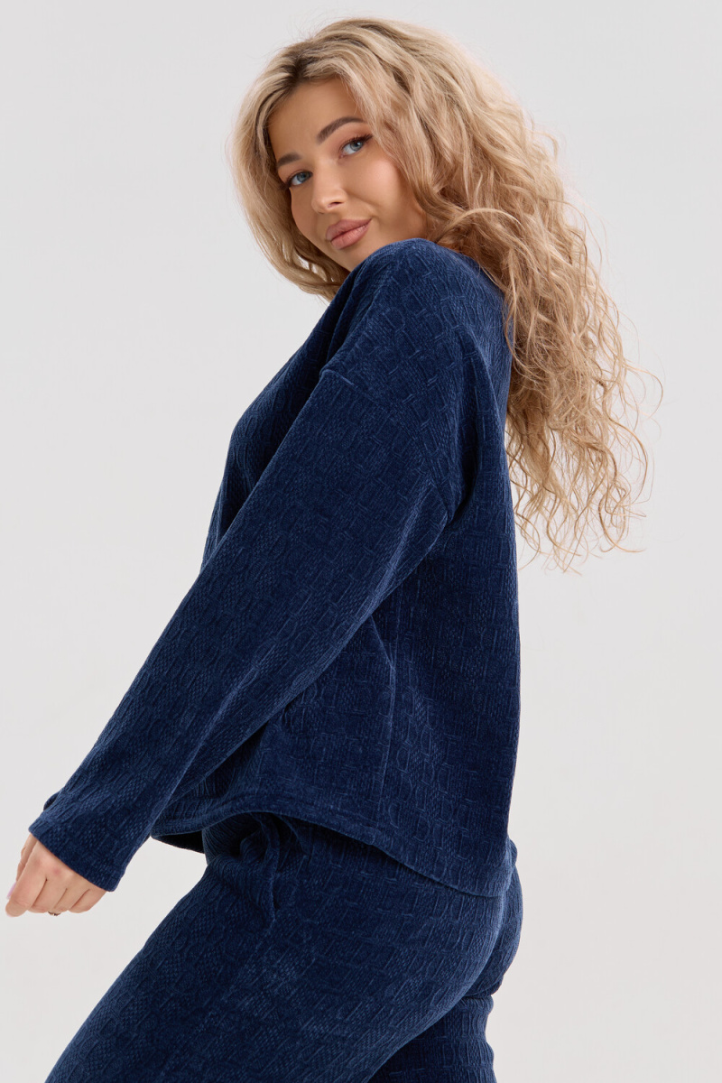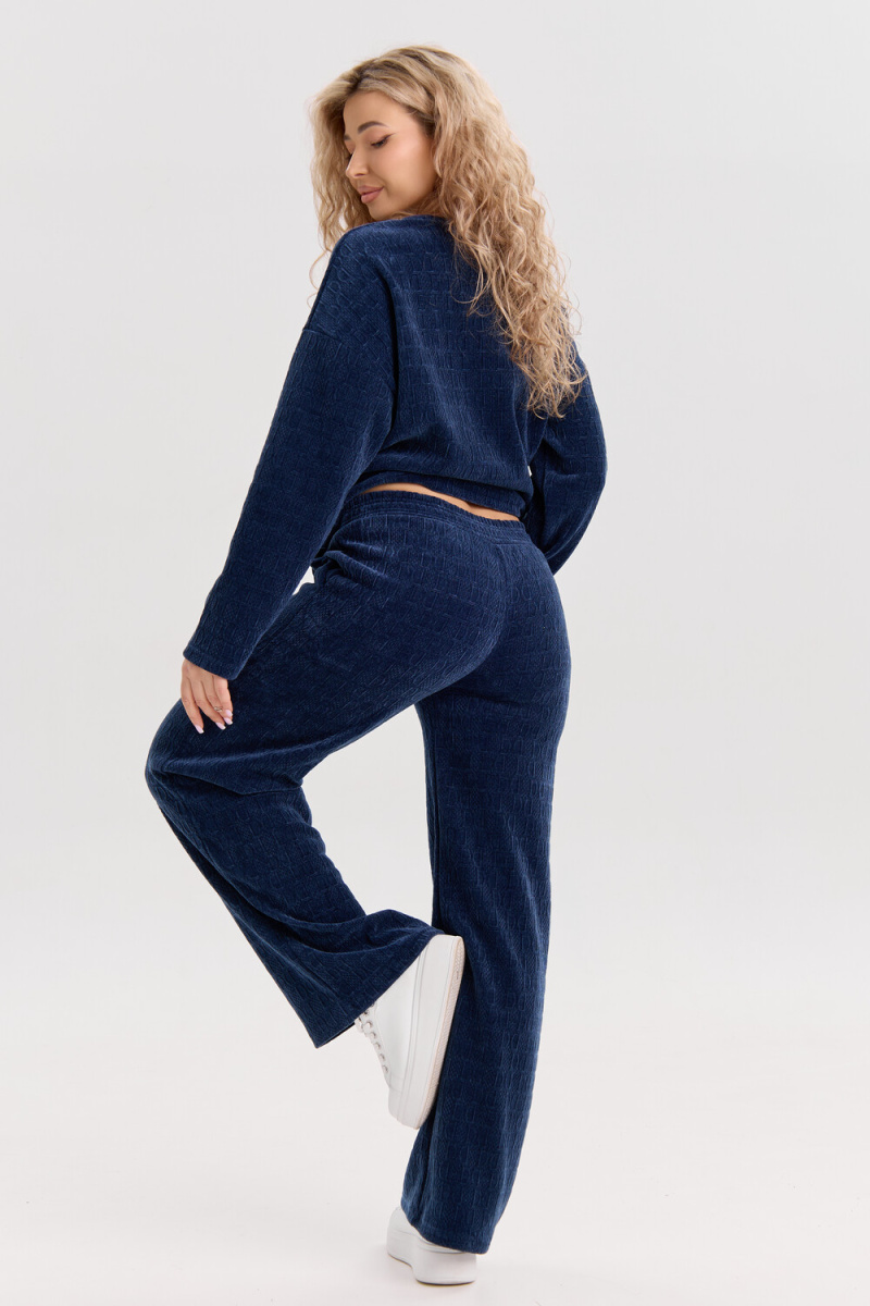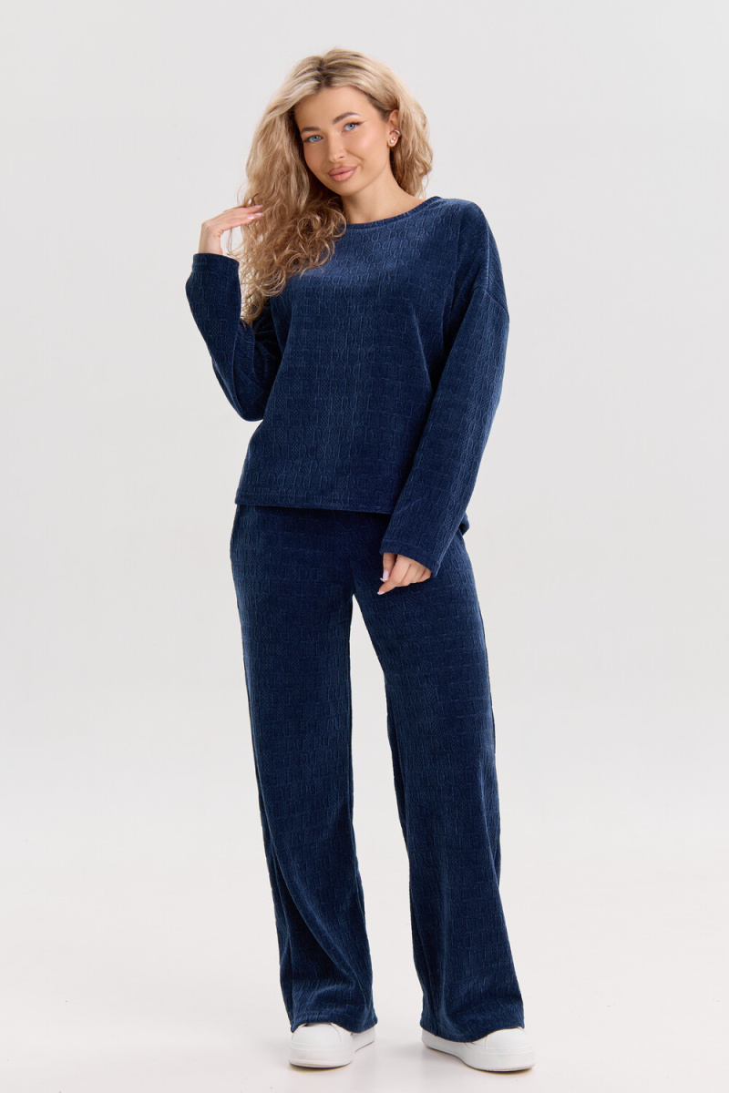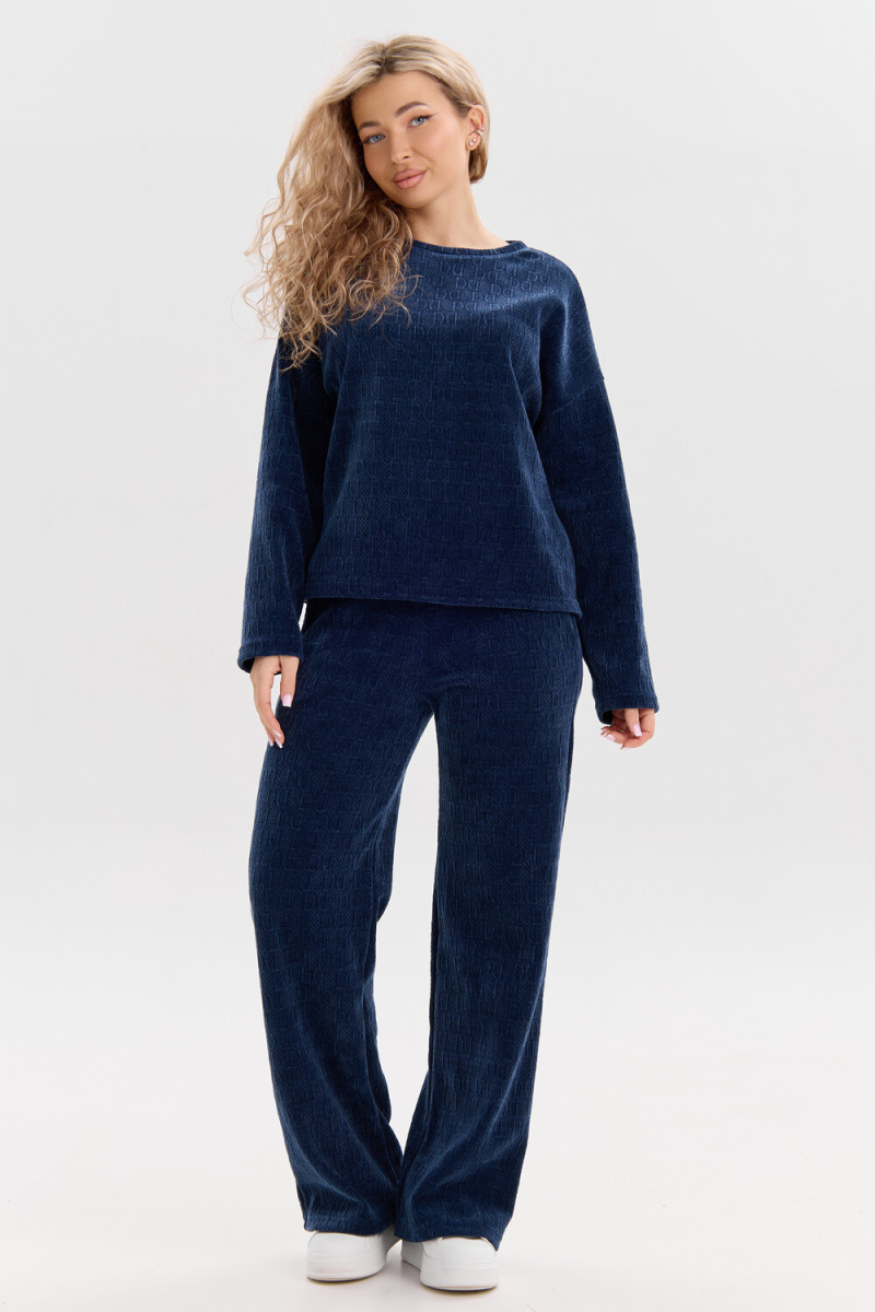 Женский костюм выполнен из жаккарда высокого качества. Жаккард - высокотехнологичный материал, прошедшей особую обработку. Ткань отличается высокими теплозащитными свойствами, при этом является дышащей. По своим характеристикам она не уступает шерстяным полотнам. И даже в сыром состоянии удерживает тепло у тела. Материал прочный, эластичный, влагостойкий. Воздухопроницаемая гигроскопичная ткань создает для тела комфортный микроклимат. Изделия из жаккарда легкие, не мнутся, не деформируются, не вытягиваються.В такой одежде удобно и комфортно. Эластичность материала позволяет легко двигаться. Костюм состоит из лонгслива и брюк. Лонг в стиле OVERSIZE ( одежда свободного кроя ) - это свобода самовыражения, позволяющая чувствовать себя комфортно и стильно одновременно. Горловина свитшота выполнена с обтачкой. Линия плеча спущена, длинный рукав. Женские стильные брюки - трубы представлены с вместительными боковыми карманами. Пояс выполнен на специализированной круговой поясной машине, что делает швы ровными и каче